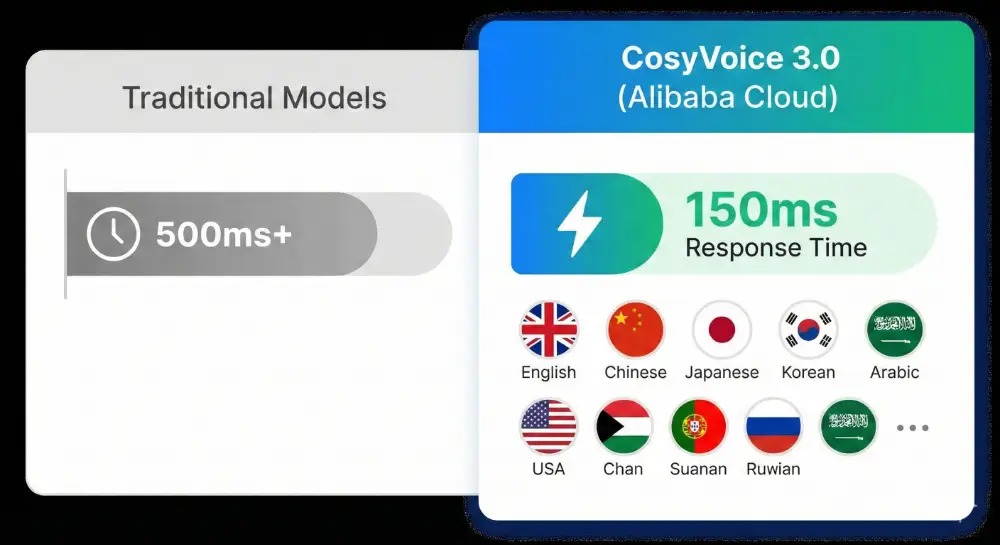 في عالم البث المباشر والمحادثات اللحظية، يعتبر زمن الاستجابة هو "العدو الأول". استطاع نموذج Fun-CosyVoice 3.0 كسر الأرقام القياسية بتحقيق زمن استجابة منخفض جداً يصل إلى قرابة 150 ميللي ثانية فقط، وذلك بفضل تقنية Bi-streaming المتطورة. هذه السرعة تجعل من الصعب على الأذن البشرية التمييز بين سرعة استجابة الآلة وسرعة استجابة البشر في الحوارات التفاعلية.